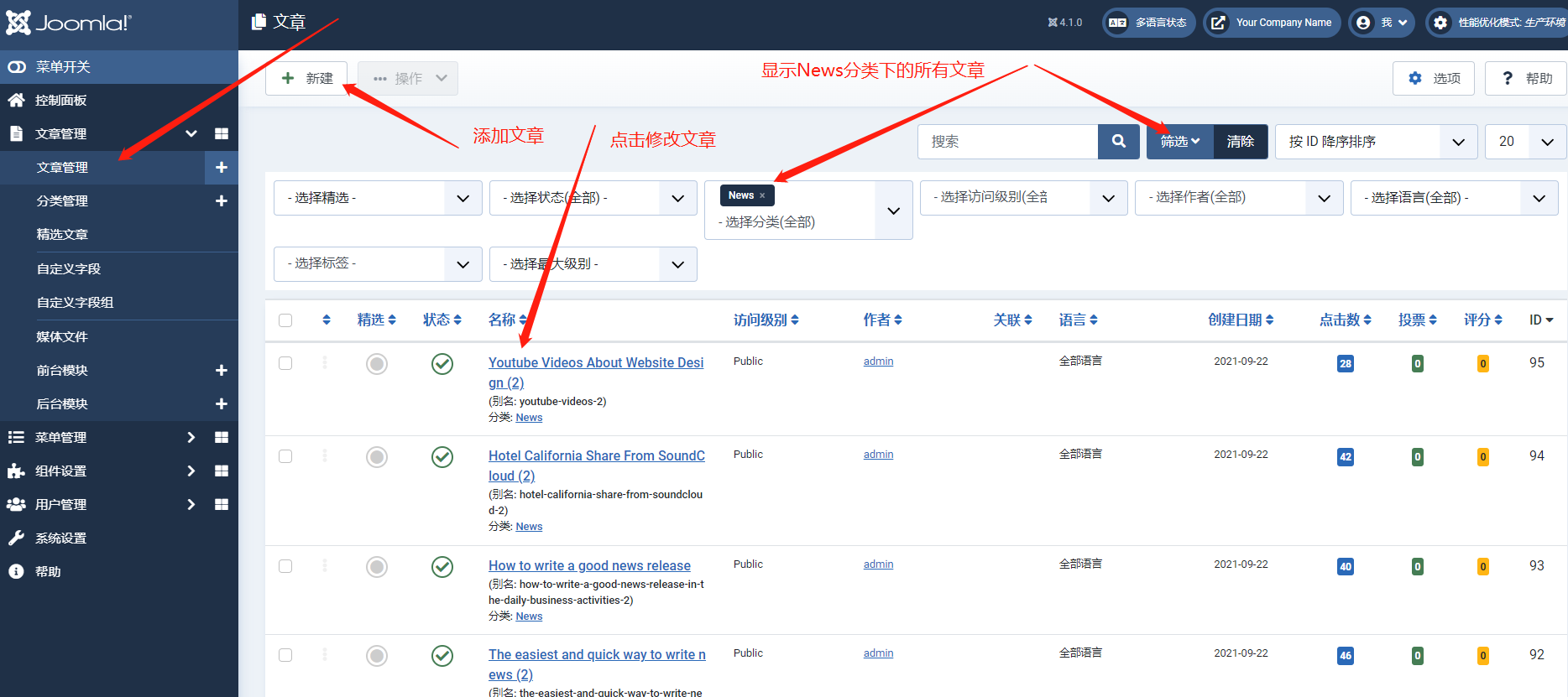 修改或添加文章(比如新闻News,博客blog等)