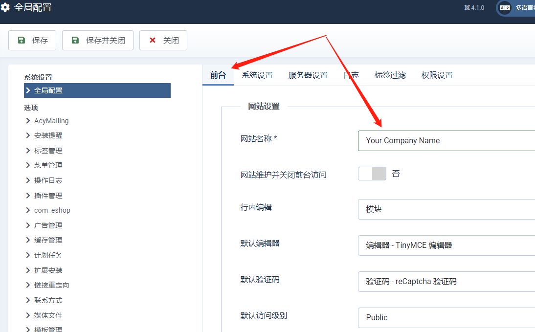 单语言网站设置网站名称: